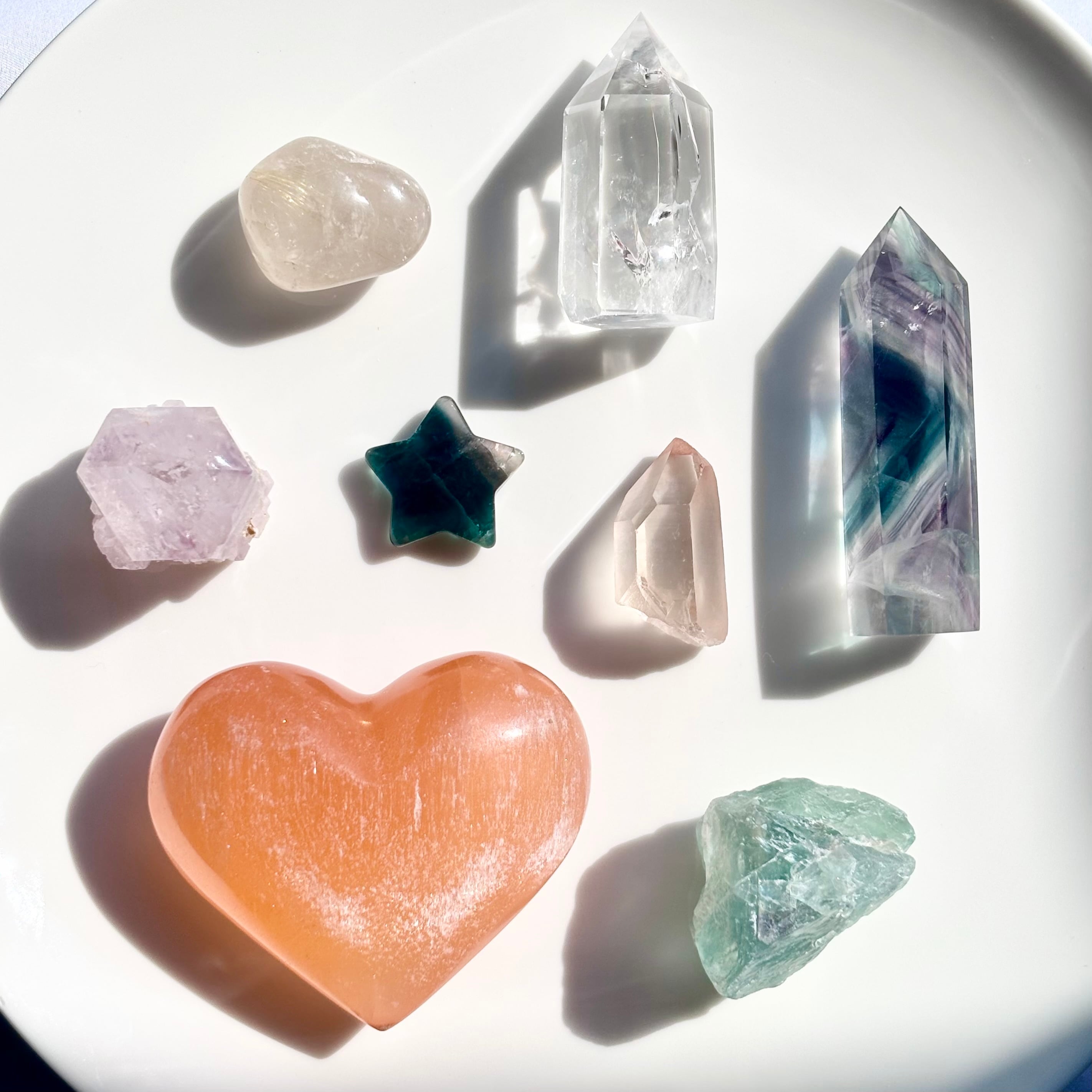 オレンジセレナイトは、 女性としての根源的な力が宿る場所である 子宮にそっと寄り添うクリスタルです。 ハート型に磨かれたこの石は まるで夕暮れの陽光が 体の奥まで染み込むように、 長い時間をかけて積み重なった疲れや、 言葉にできなかった感情を、 ゆっくりとほどいてくれます。 傷ついた女性性を癒す。 忘れていた自分を取り戻す。 月のリズムとともに生きる女性たちへ。 悲しみも、怒りも、喜びも、 すべてを受け止めてきた子宮へ。 この石をお腹の上に置いて、 目を閉じてみてください。 オレンジの温もりが、 あなたの奥底に眠る生命力と愛を、 静かに呼び醒まします。 ※ セレナイトは硬度が低く柔らかな石です。 その繊細さもまた、 この石の美しさのひとつです。 どうか丁寧に手のひらで包むように お取り扱いください。 8,2×7,3×3,9cm 238g ■ お手入れ/取り扱い注意事項 - 太陽光や流水による浄化はお控えください。 ■ 発送・注文に関する情報や注意事項 - ご注文確認後、3~7日以内に発送いたします。 ■ その他の情報や注意事項 - 天然石は自然の贈り物です。成長過程での欠けやクラック、内包物、微細な傷が見られる場合がございますが、ご了承ください。 - 万が一不良品がございましたら、到着後7日以内にご連絡ください。