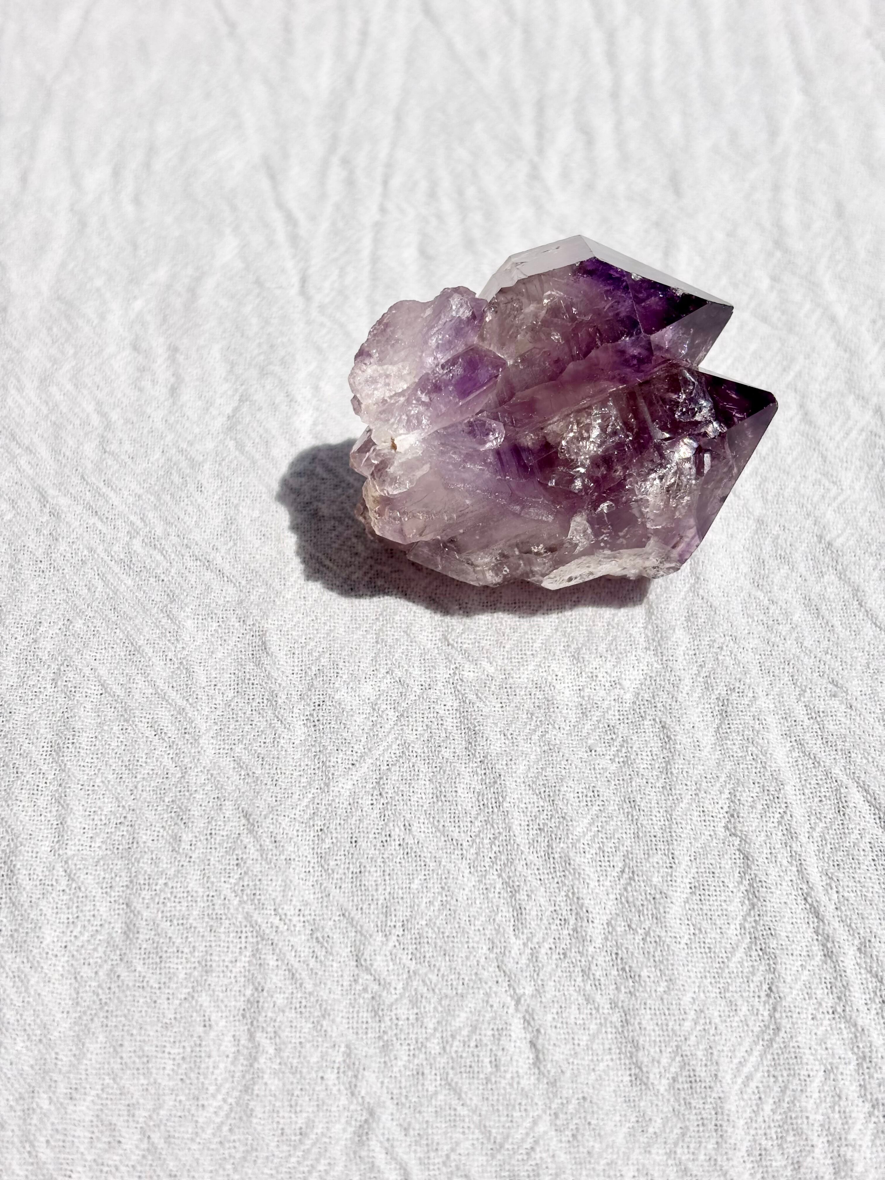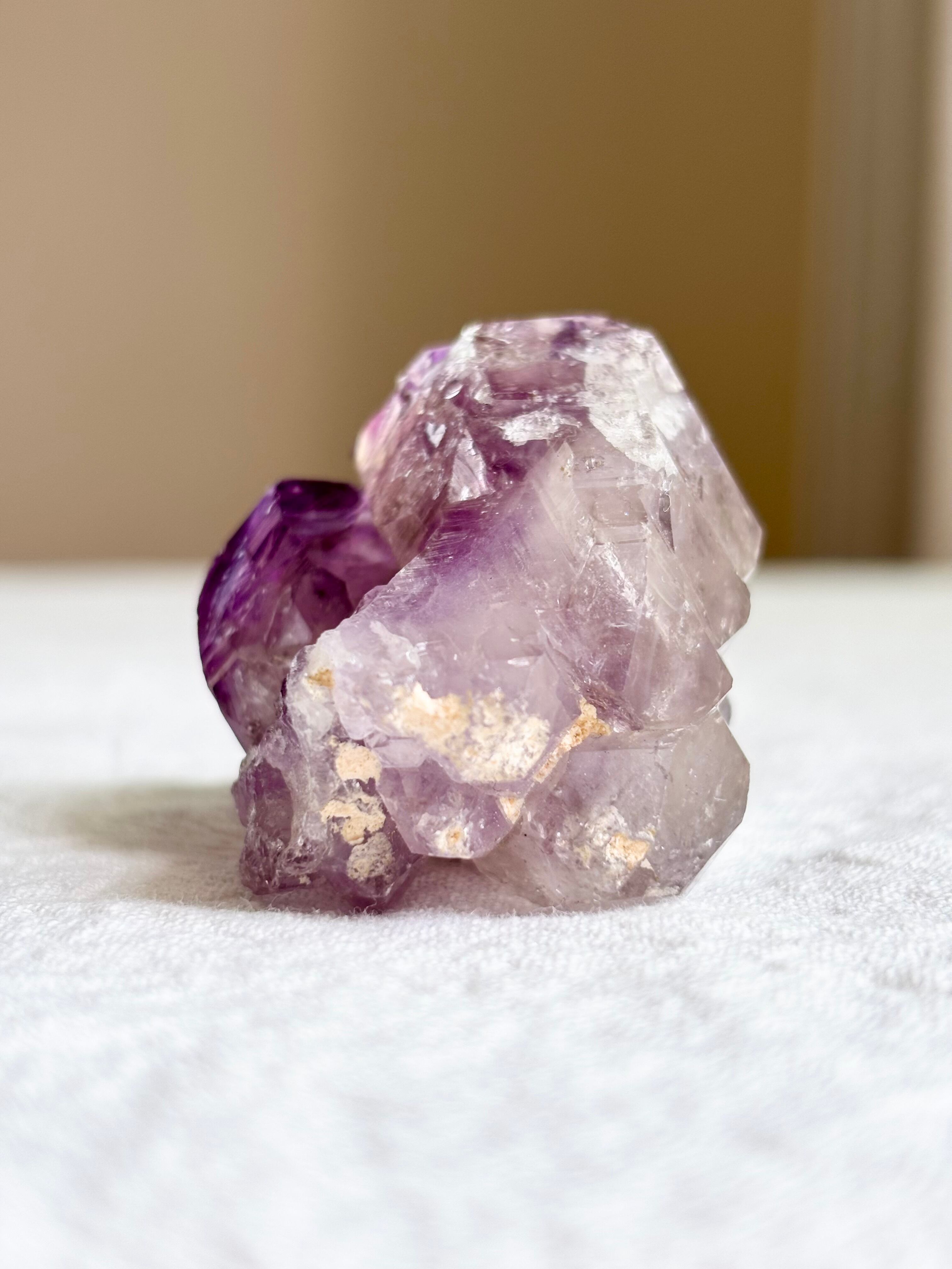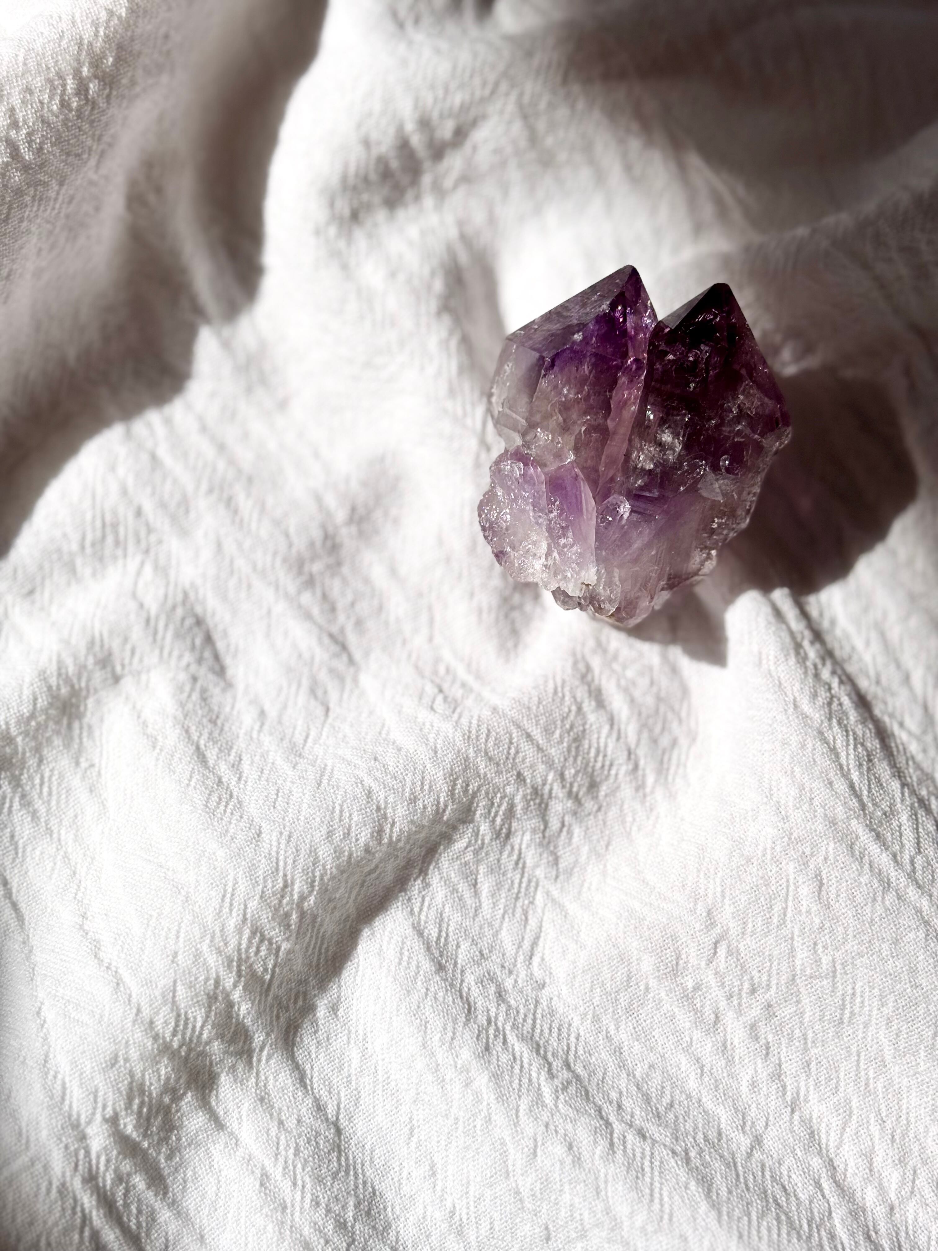 一本の原石から、ふたつの意志が育ったようなこの結晶は、まるで別々の道を歩む2人のソウルメイトのよう。