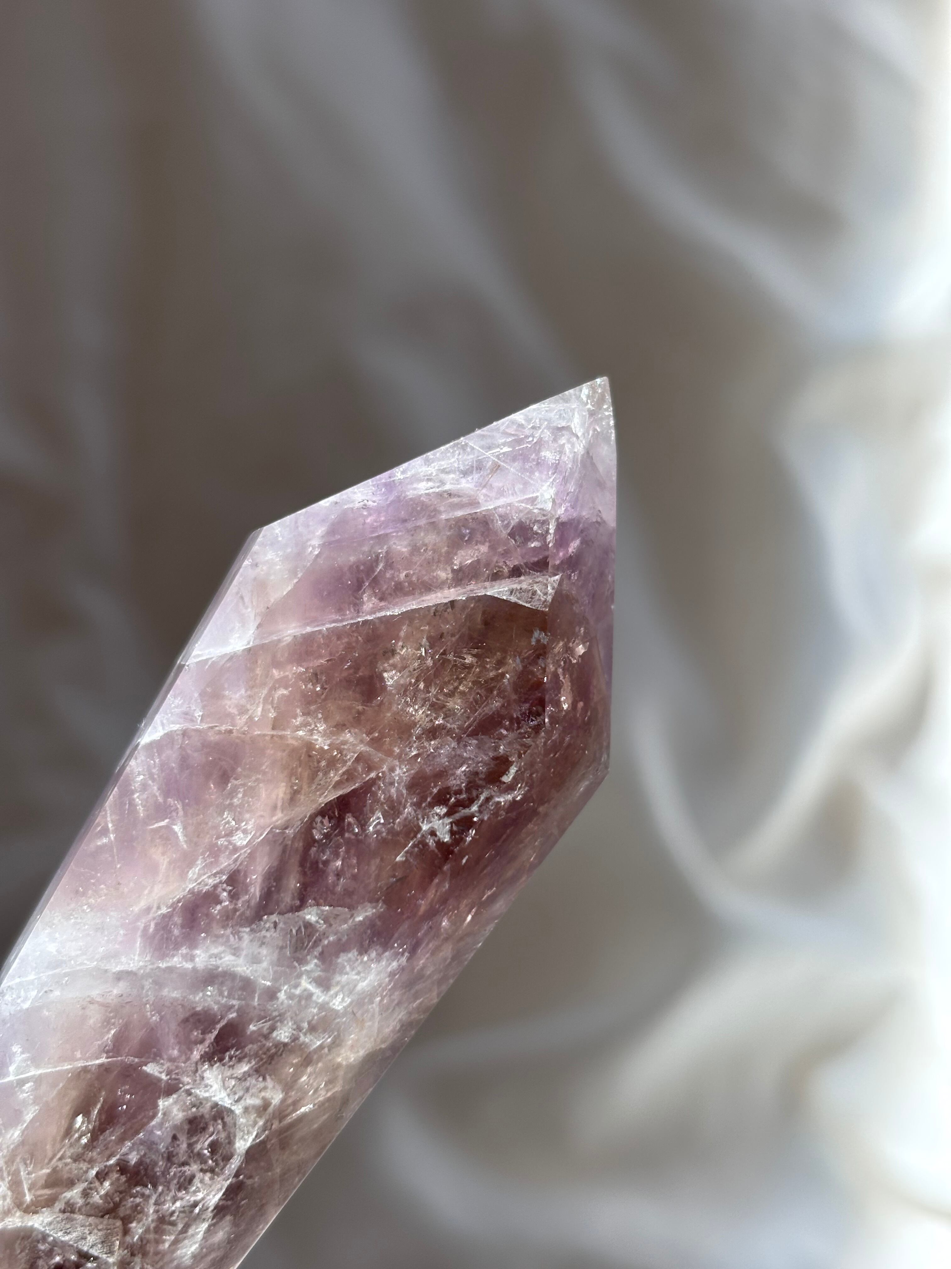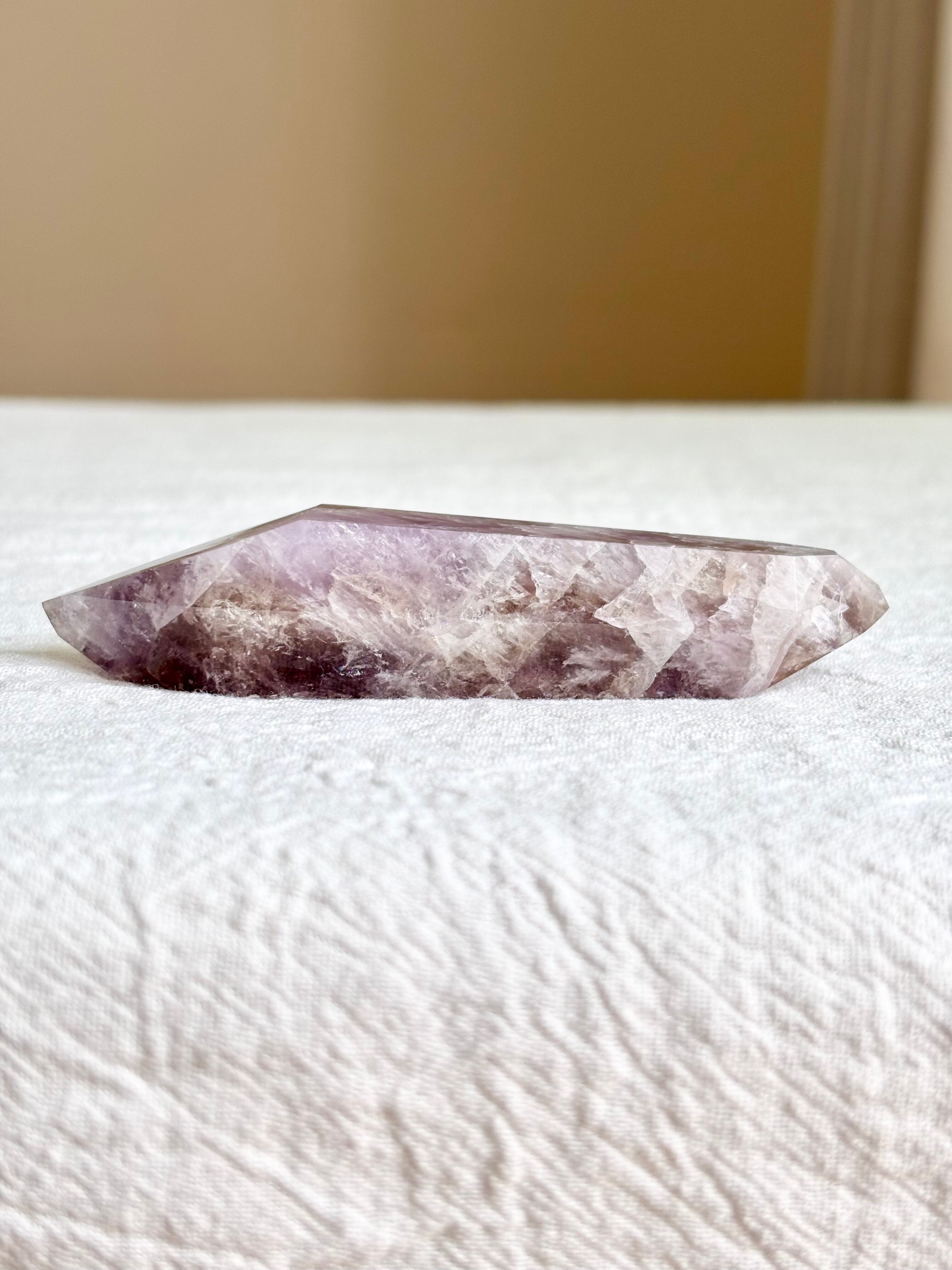 淡い紫のグラデーションと、内側に浮かぶ結晶の模様。