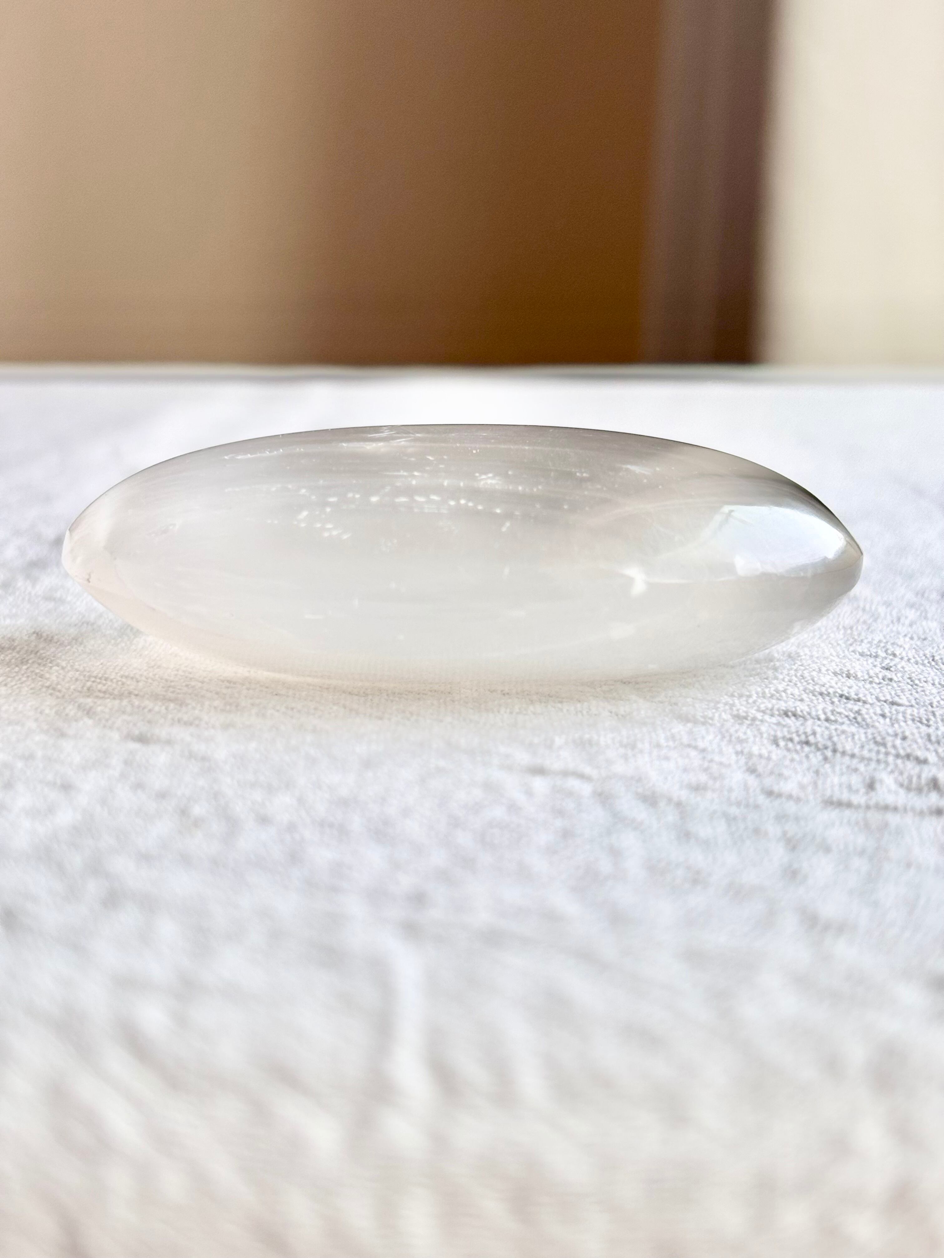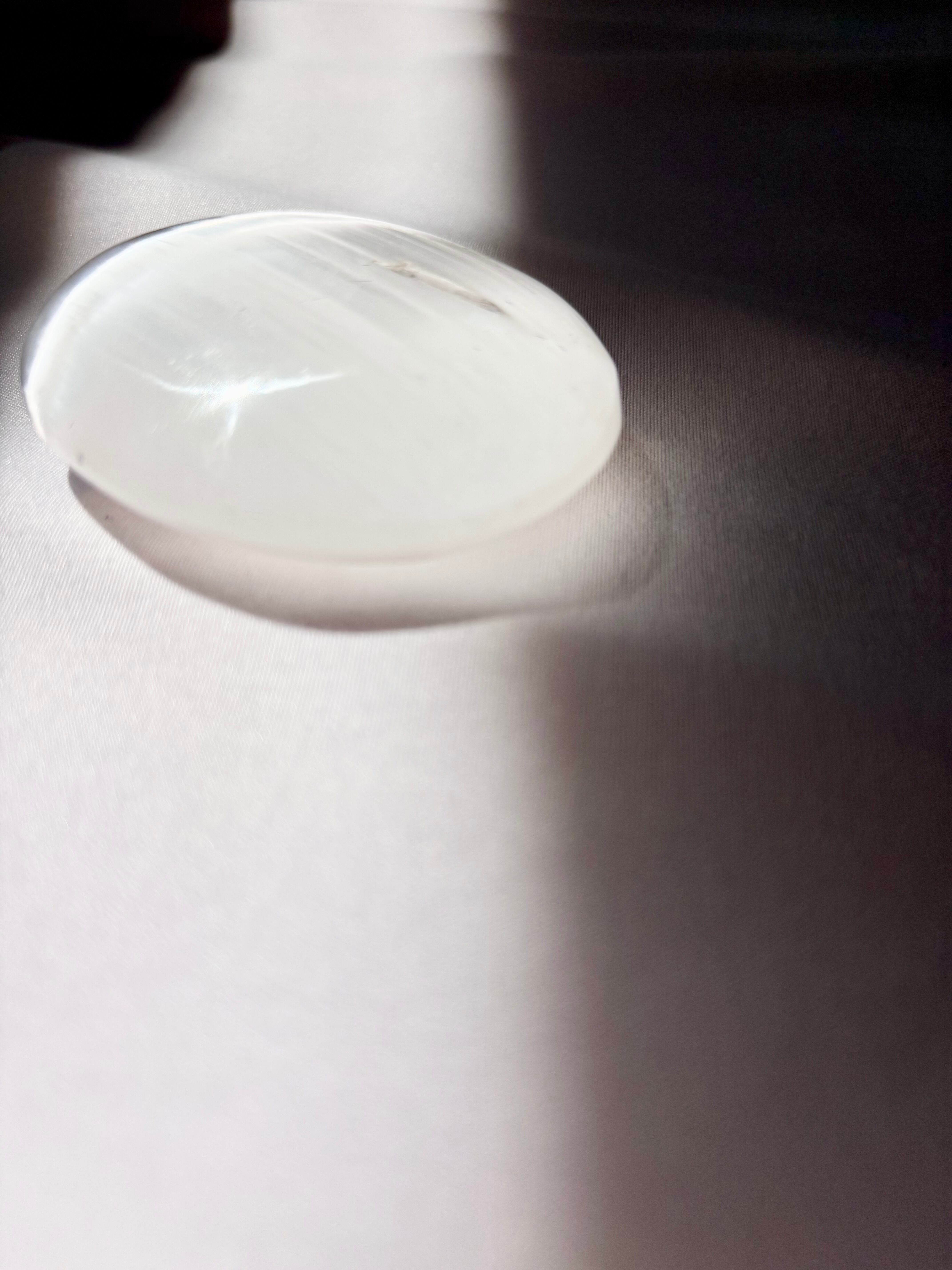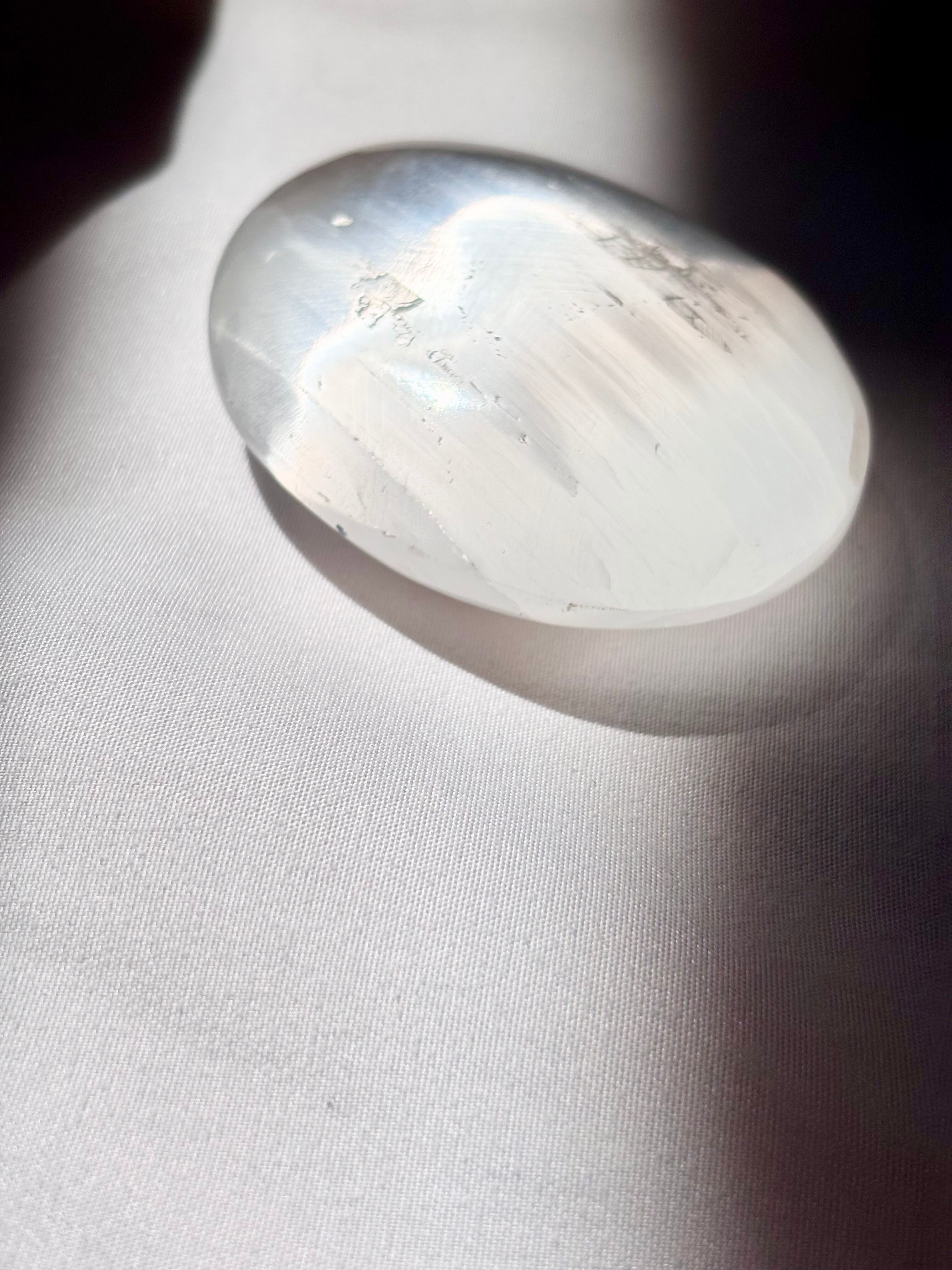 まるで月のひとしずくが結晶となって姿を現したような、セレナイトの握り石。
