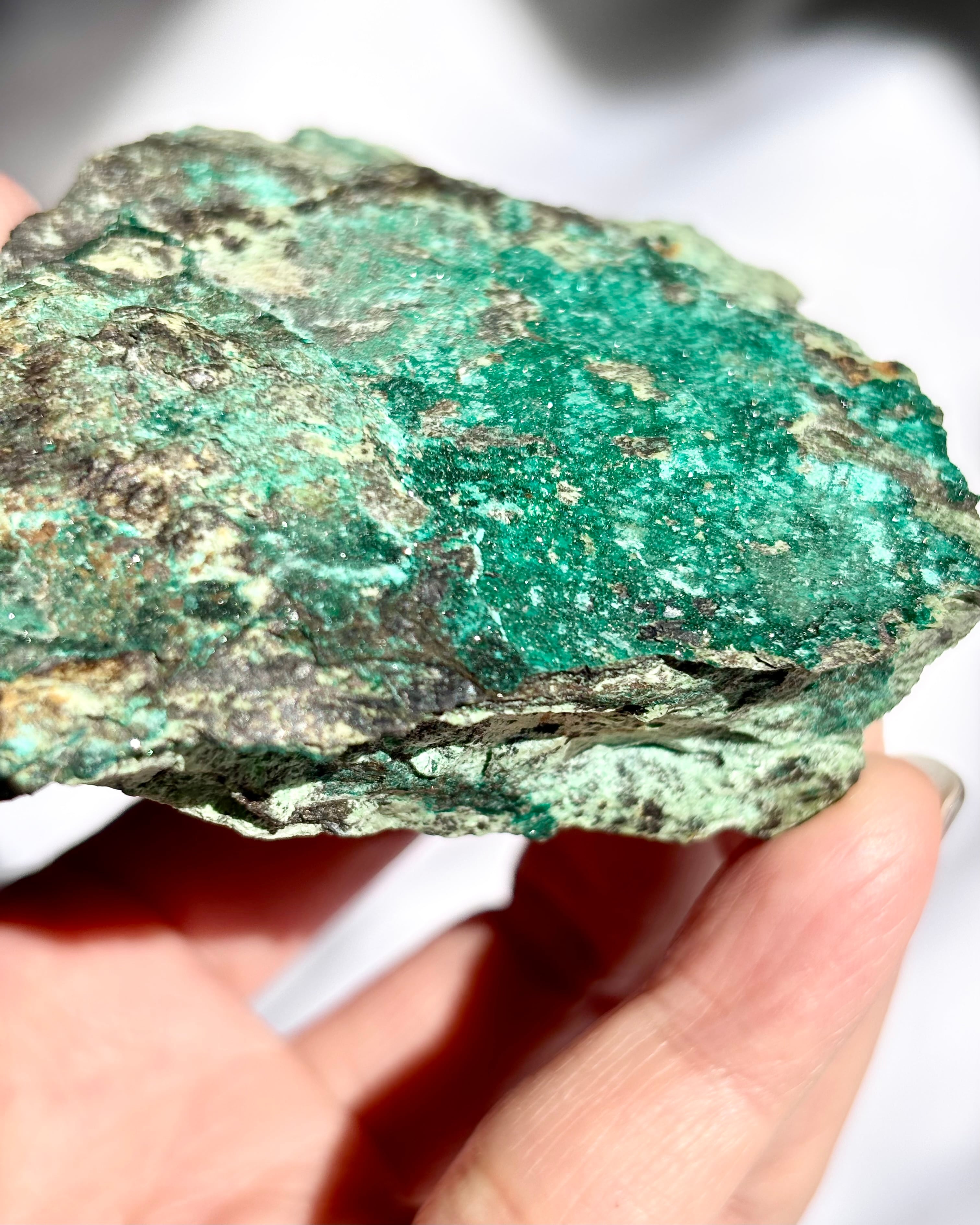 そこに重なるマラカイトの力強い層は、